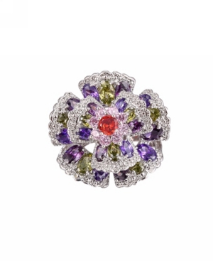 A & M Silver-Tone Ruby Accent Trio Pear Ring