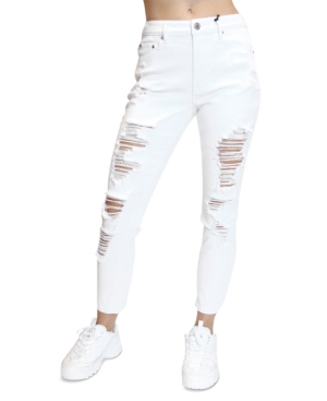 Almost Famous Juniors- High-Rise Destructed Skinny Jeans