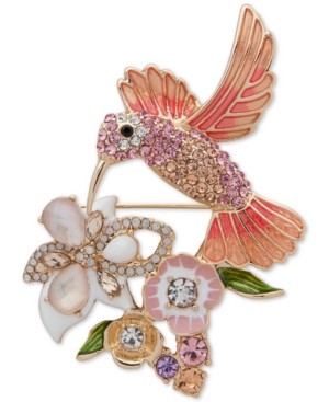 Anne Klein Gold-Tone Multicolor Crystal Hummingbird Pin