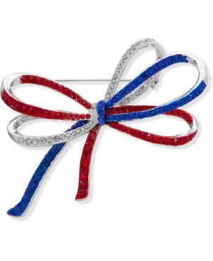 Anne Klein Silver-Tone Pave Red, White & Blue Bow Pin, Created for Macy-s