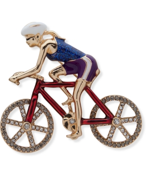 Anne Klein Gold-Tone Pave Red, White & Blue Bicyclist Pin, Created for Macy-s