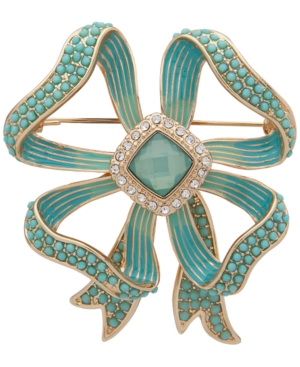 Anne Klein Gold-Tone Pave & Stone Bow Pin