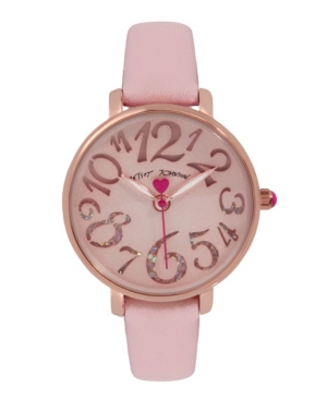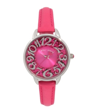 Betsey Johnson Women-s Glitter Dial Pink Polyurethane Strap Bracelet Watch 34mm