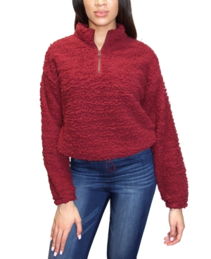 Crave Fame Juniors- Faux-Sherpa Quarter-Zip Top