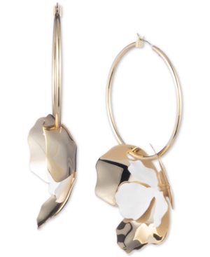 Dkny Two-Tone Flower Charm Hoop Earrings