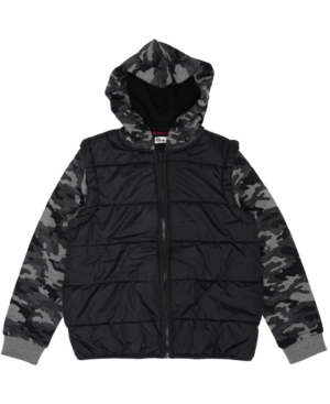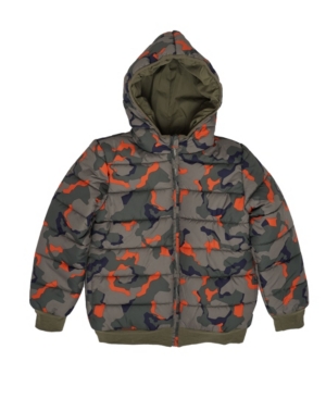 Epic Threads Big Boys Camo Sleeve Full Zip Hooded Puffer Jacket