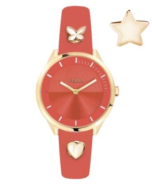 Furla Women-s My Piper Orange Dial Calfskin Leather Watch