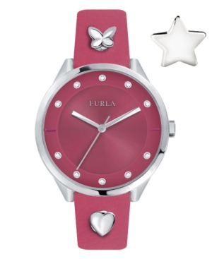 Furla Women-s Pin Pink Dial Calfskin Leather Watch
