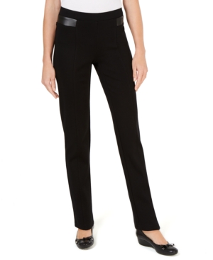 Jm Collection Faux-Leather-Trim Ponte-Knit Pants, Created for Macy-s