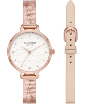 Kate Spade New York Women-s Metro Floral Rose Gold-Tone Stainless Steel Mesh Bracelet Watch 34mm Gift Set
