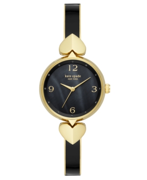 Kate Spade New York Women-s Hollis Gold-Tone Stainless Steel & Black Enamel Bangle Bracelet Watch 30mm