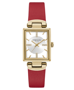 Kenneth Cole New York Ladies Transparency Rectangular North - South Red Genuine Leather Strap Watch 25mm