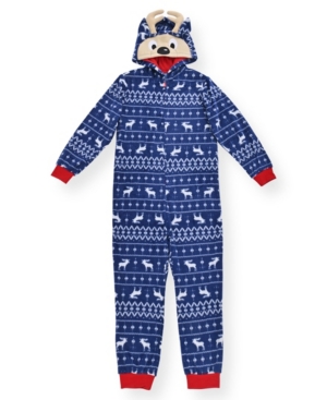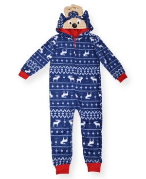 Big Boy-s Fair Isle Print Minky Fleece Onesie with Novelty Reindeer Hood