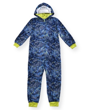Big Boy-s Space Print Minky Fleece Onesie with Nasa Hood