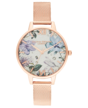 Olivia Burton Women-s Bejeweled Florals Rose Gold-Tone Stainless Steel Mesh Bracelet Watch 34mm