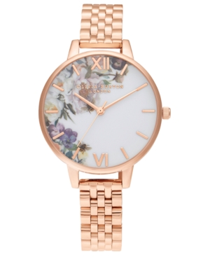 Olivia Burton Women-s Enchanted Garden Rose Gold-Tone Stainless Steel Bracelet Watch 34mm