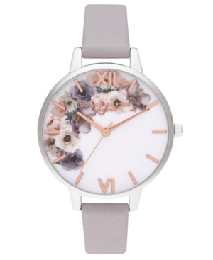Olivia Burton Women-s Watercolour Floral Gray Lilac Leather Strap Watch 34mm