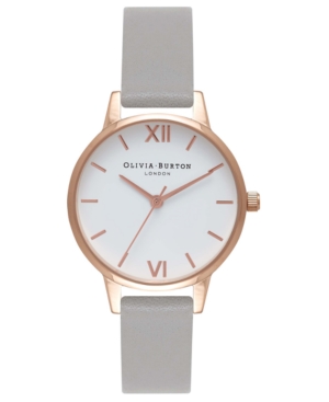 Olivia Burton Women-s Gray Leather Strap Watch 30mm