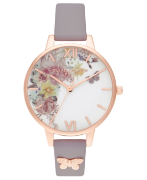 Olivia Burton Women-s Enchanted Garden Gray Lilac Leather Strap Watch 34mm