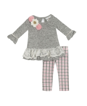Rare Editions Little Girl Sweater Set With Lace Detail And Flower Applique Legging Set
