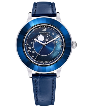 Swarovski Women-s Swiss Octea Lux Moonphase Blue Leather Strap Watch 39mm - A Special Edition