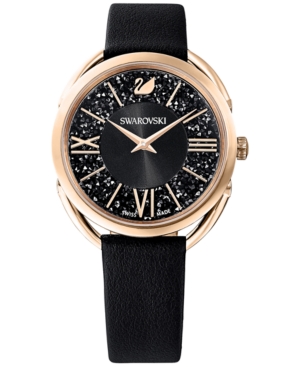 Swarovski Women-s Swiss Crystalline Glam Black Leather Strap Watch 35mm