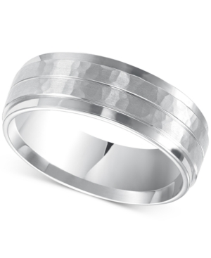 Men-s Hammered and Brush Finish Wedding Band in 14k White Gold