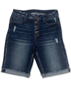 Vanilla Star Juniors- Ripped High Rise Button-Fly Denim Bermuda Shorts