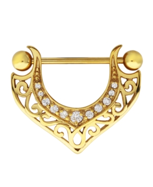 Bodifine Stainless Steel Crystal Filigree Shield Nipple Bar PRICE: $26.00