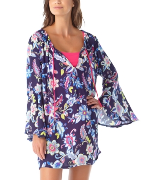 Anne Cole Holiday Paisley Bell-Sleeve Tunic Swim Cover-Up Women-s Swimsuit PRICE: $78.00