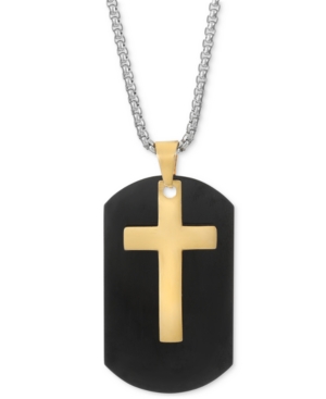 Men-s Tri-Tone Dog Tag Cross 24" Pendant Necklace, Created for Macy-s