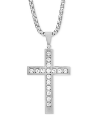 Inc Men-s Stainless Steel Cubic Zirconia Cross 24" Pendant Necklace, Created for Macy-s