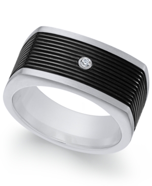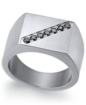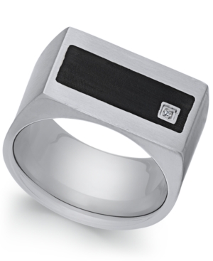 Sutton by Rhona Sutton Men-s Stainless Steel Cubic Zirconia and Black Enamel Ring
