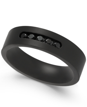 Sutton by Rhona Sutton Men-s Black-Tone Stainless Steel Jet Cubic Zirconia Ring