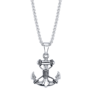 He Rocks Anchor with Rope Pendant Necklace in Stainless Steel, 24" Chain