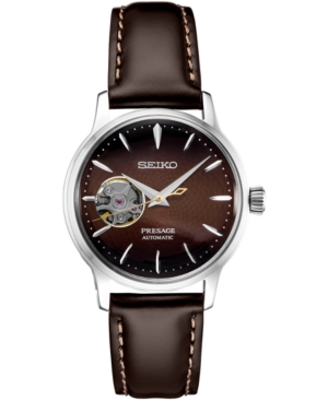 Seiko Women-s Presage Automatic Brown Leather Strap Watch 33.8mm