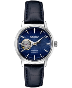 Seiko Women-s Automatic Presage Blue Leather Strap Watch 33.8mm